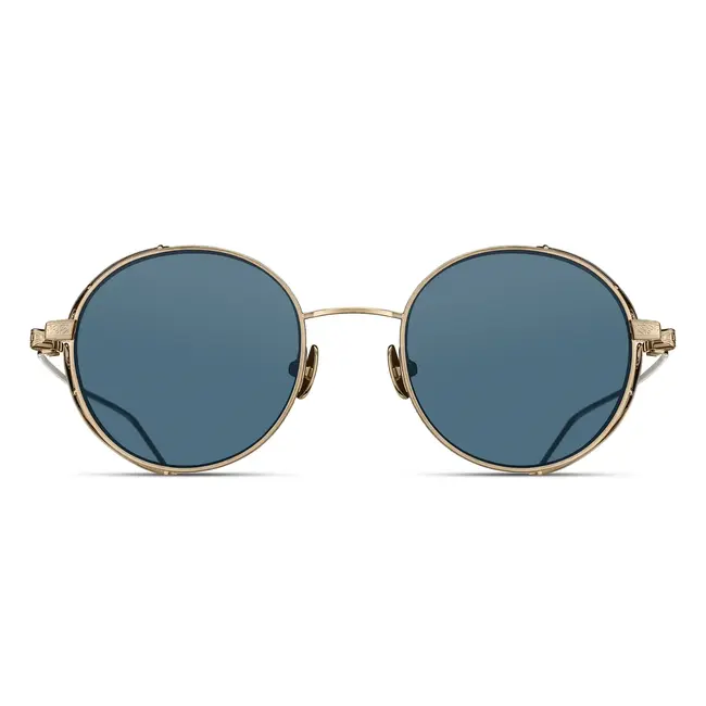 Blends lightweight titanium with intricate detailing, featuring Matsuda’s signature M+N engraving and ornate side shields with lacquered accents, a tribute to the stained glass windows of Paris’ Gothic cathedrals.
