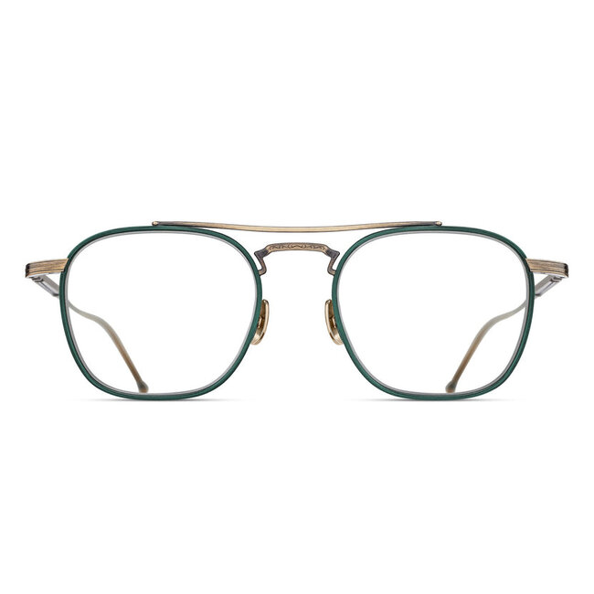 The M3157 is a forward thinking interpretation of a classic pantos style. Crafted entirely of titanium, it features a “double” bridge and hand-lacquered art deco inspired temples.